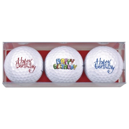 Tres bolas de golf con motivo Happy Birthday