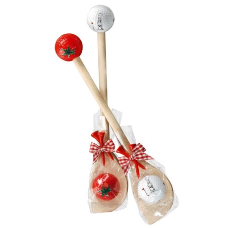 Cuchara de madera con una decoración de bola de golf. Regalada como un signo de amor por siglos y más tarde como regalo de bodas y otros eventos importantes. Perfecto detalle para amantes de golf. Producto existe en dos diseños diferentes, elige su favorito.