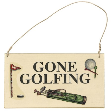 Letrero Colgante de madera (20 cm de ancho) de diseño vintage. Producto existe en dos opciones: Golfers Welcome y Gone Golfers. Ideal para Golf Shops, Campos de Golf, zonas comerciales relacionadas con golf.